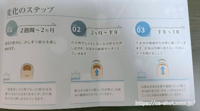 一度濁ったり、厚くなったり、変形した爪は元に戻ることはないので、最低でも半年使ってみたほうが良さそうです!